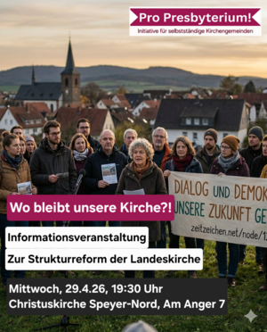 In der Pfalz hat sich eine engagierte Initiative aus Christen - sowohl Laien als auch hauptamtlich angestellte Kirchenmitarbeiter - gebildet, die für den Erhalt der Presbyterien in der Evangelischen Kirche der Pfalz kämpft. Nähere Informationen unter: https://www.propresbyterium.de/