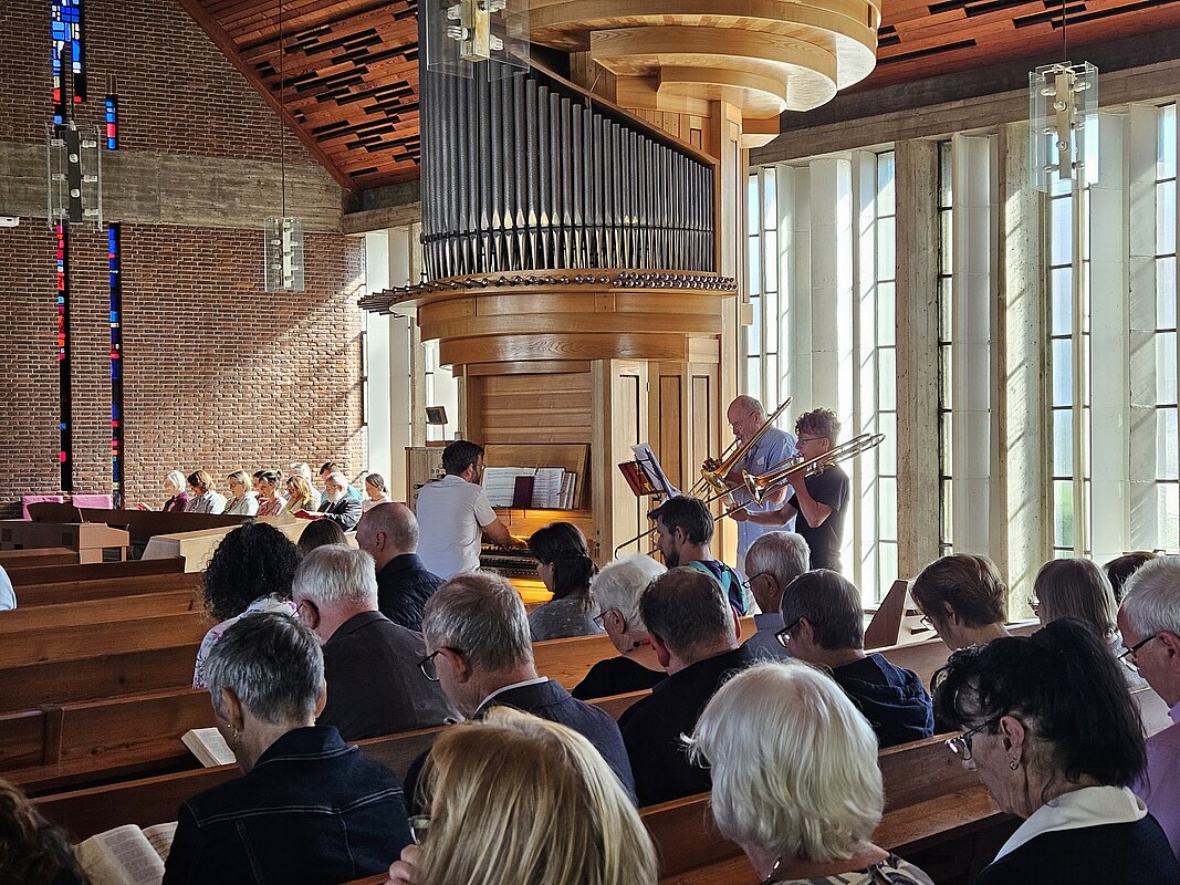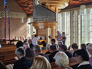 Anstatt des traditionellen Kirchenkaffees hatte das Presbyterium im Anschluss an den Gottesdienst noch zu Sekt, Saft und Brezeln geladen. Zahlreiche Gottesdienstbesucher nutzen diese Gelegenheit, um Dr. Kronenberg noch persönlich zu gratulieren.
